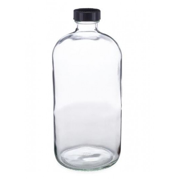 04-32BRPC201 // 32oz Clear Boston Round Assembled w/33-400 Black Phenolic Poly Cone Lined Cap (20/cs)