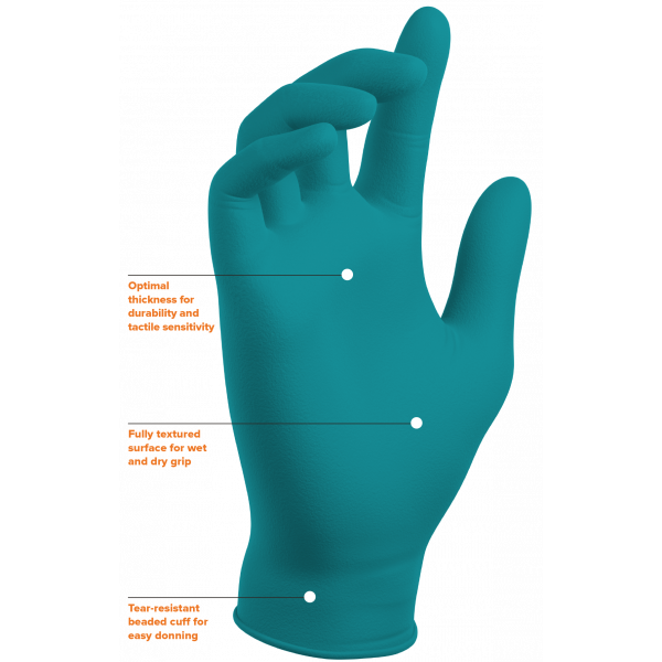 Medium Teal Nitrile Exam (Model PF-95TL) Mil 5.8 Full Texture ,Length 9.5" Powder Free (100/bx, 10bxs/cs)