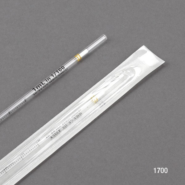 Serological Pipette, 1mL, PS, Standard Tip, 275mm, STERILE, Yellow Band, 25/Pack, 40 Packs/Unit